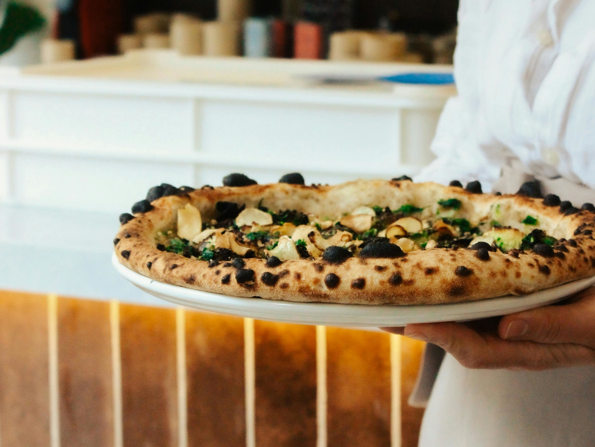 sos pomidorowy, n'duja, gorgonzola, figa, orzechy pekan, mozzarella di FDL -